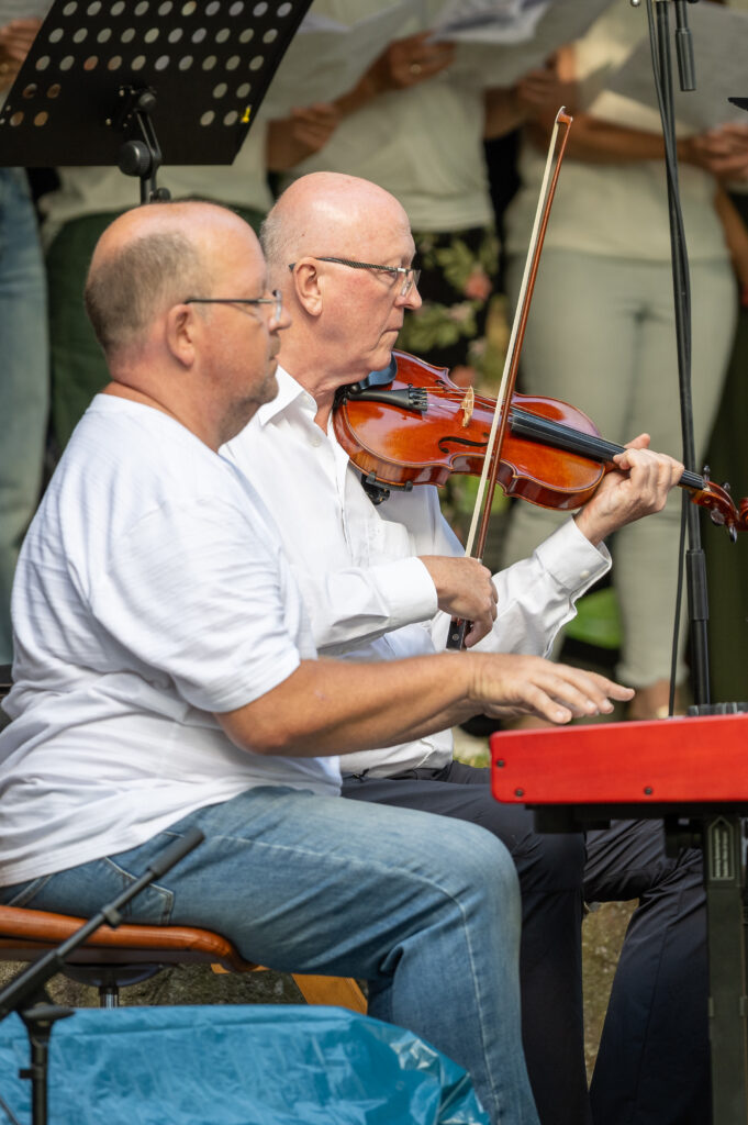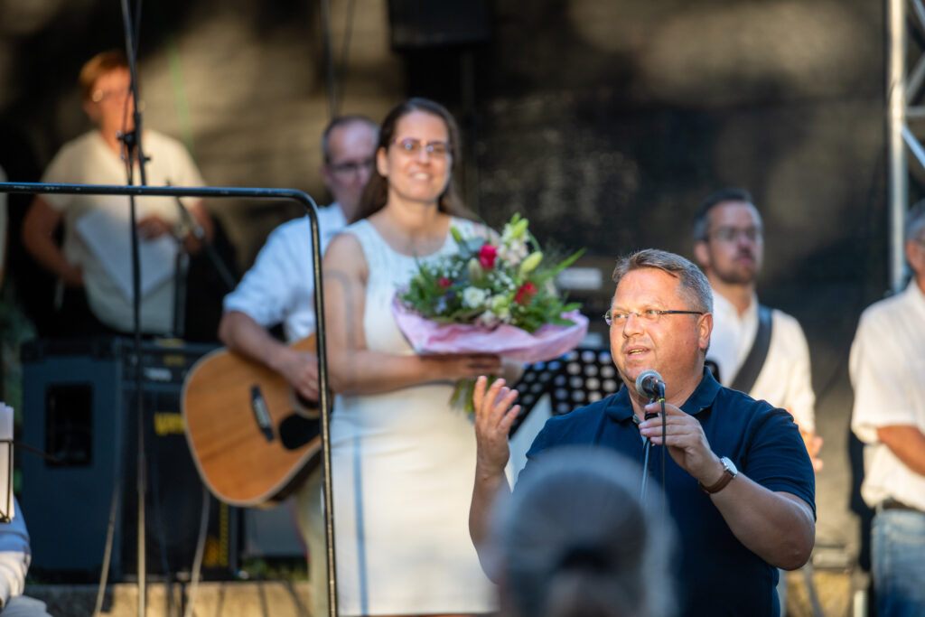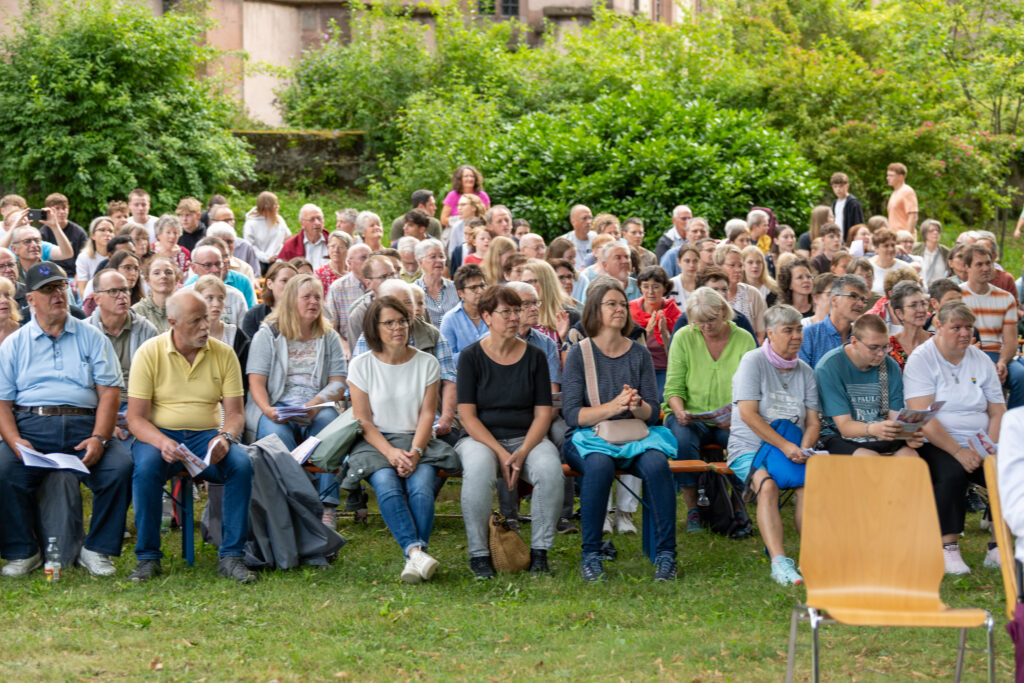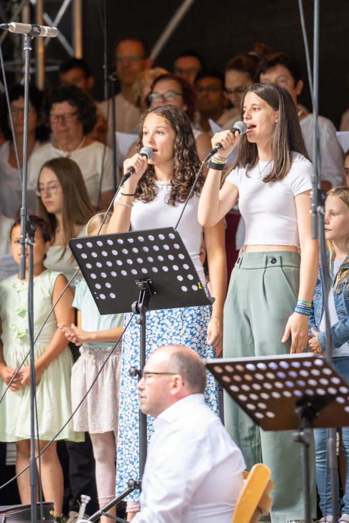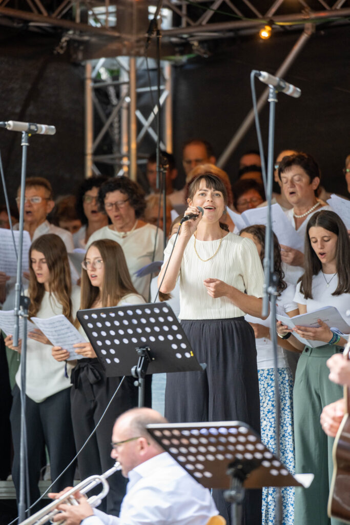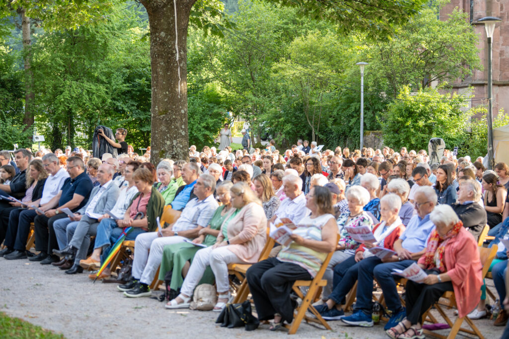 Trotz anfänglicher Wetterunsicherheit und Regenschauer vertrauten die Organisatoren auf besseres Wetter – mit Erfolg: Pünktlich zum Konzertbeginn brach die Sonne durch die Wolken. Über 70 Sängerinnen und Sänger, darunter auch der Lautenbacher Kinderchor und engagierte Firmlinge, erfüllten den Park mit kraftvollen Liedern wie „10.000 Gründe“ und „Preis den Herrn“.